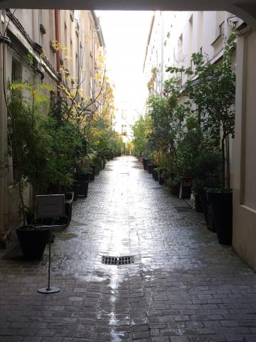 Réunis près du métro "Bonne nouvelle", nous retrouvons Karine… et la pluie qui heureusement s’arrête très vite. Nous suivrons notre guide entre deux célèbres salles de cinéma le GRAND REX et le LOUXOR.